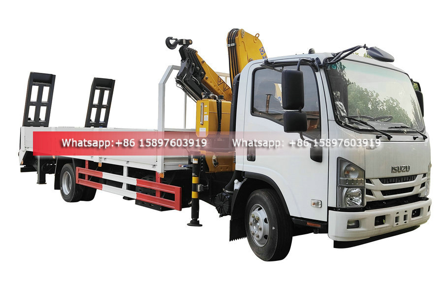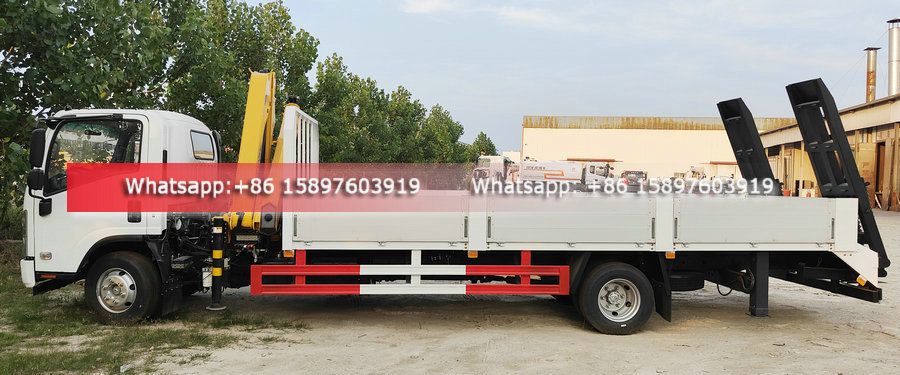 Russia Customer ordered ISUZU Truck With Crane Finsihed at our factory , will be delivery to Manzhouli port and export o Russia. This is already the customer's fourth order. Original ISUZU 4X2 Chassis, ISUZU 190HP Euro 6 Engine, 6200 meter Aluminum alloy Flatbed Cargo Length. ISUZU Truck With Crane With Rear Hydraulic Ladder for Transportation of construction machinery