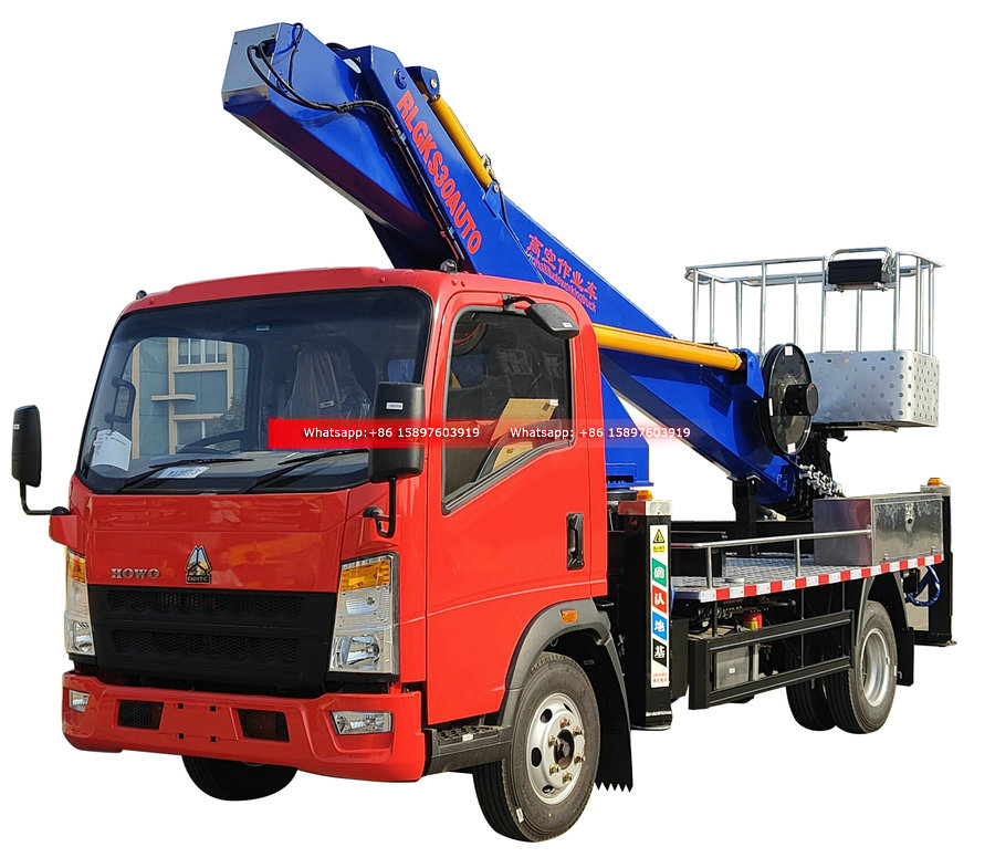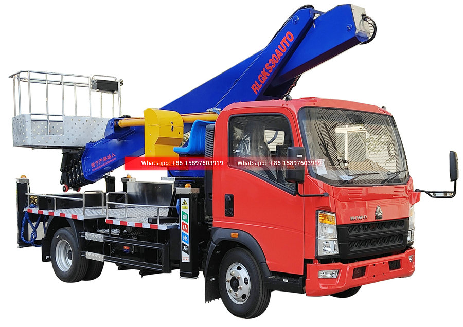 HOWO Right Hand Driving Aerial Working Truck 30meters Lifting Height Truck Expor to Fiji from our factory Fiji Customer Ordered 30meter Aerial working truck was finished at our factory, tested before delivery.